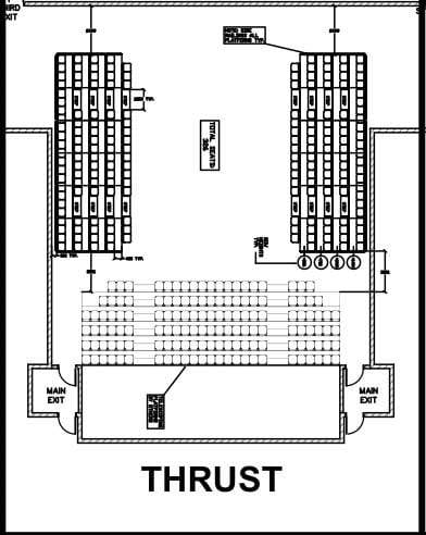 The “Black Box” moniker refers to the space’s ability to be configured in layouts other than traditional proscenium theatre. We can accommodate the following configurations: